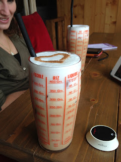 We ordered our standard which is an iced cappuccino and a hot one and also a honey bread. I was excited to see my cup which had many markings of measurements on it, and lots of foam on top. Dan's drink was just as delightful as there was a thick layer of foam on his as well. The honey bread, was something totally different, and was amazing. This place served it with ice cream which Dan gobbled up.